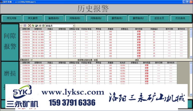 SYZJX-PC提升机智能震动温度闸间隙综合监控系统-历史报警