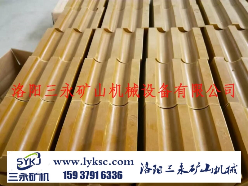 衬块主要是防止天轮与钢丝绳直接接触而产生相互磨损。天轮衬块对保护钢丝绳的寿命起着非常重要的作用。钢丝绳在运行时会产生自转。如果摩擦系数过高,会妨碍钢丝绳的旋转,损伤钢丝绳。所以提升机天轮导向轮衬块在选择的时候一定要选择性能稳定且耐磨的天轮导向轮衬块。